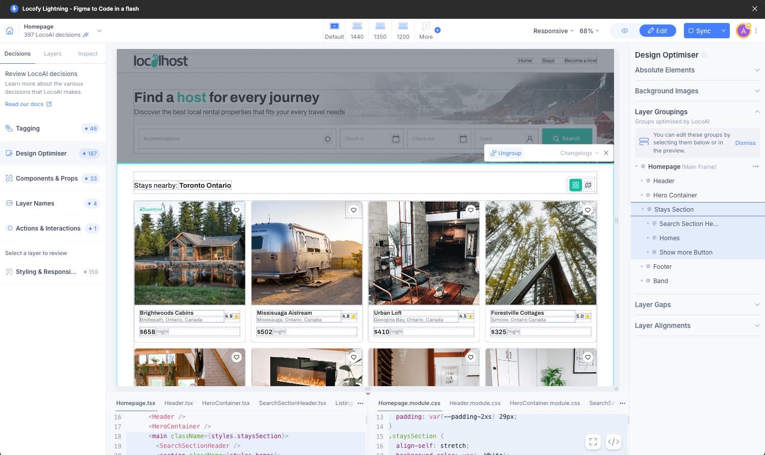 In this step, LocoAI scans through your design files and applies styling & layout to your elements across various media queries so your designs can adapt to different screen sizes.