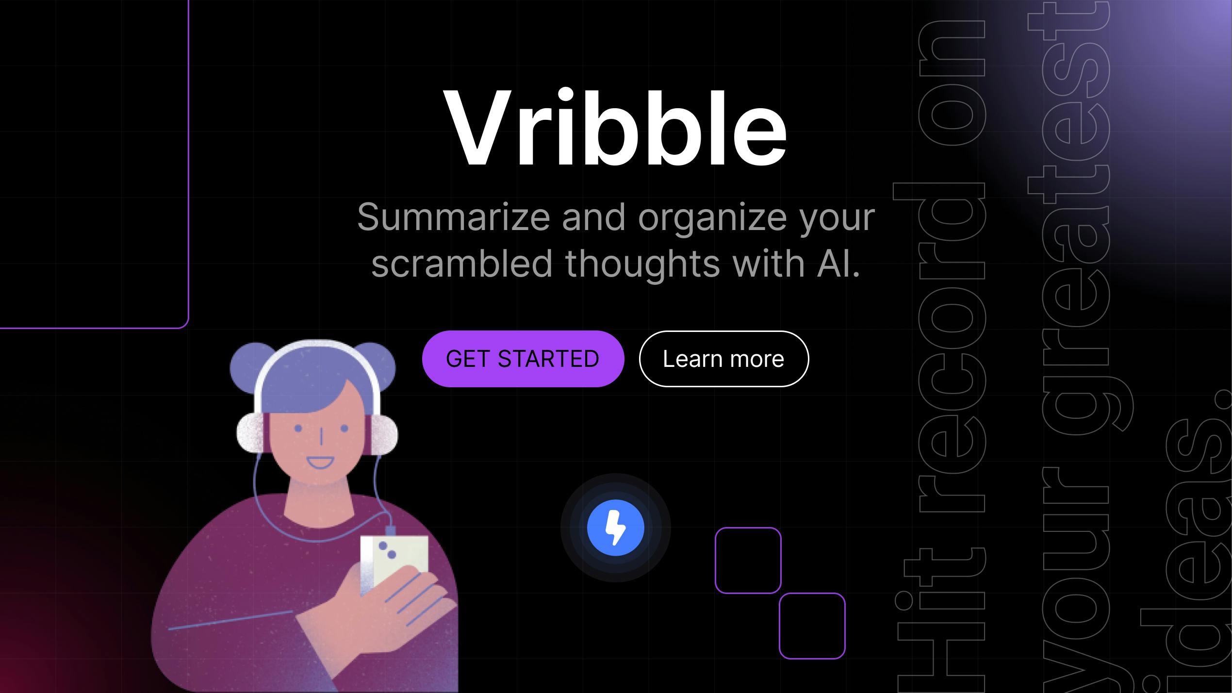 Vribble, based out of Toronto, Canada, is a platform that allows you to record your thoughts and instantly transcribe & transform them into crystal-clear summaries.