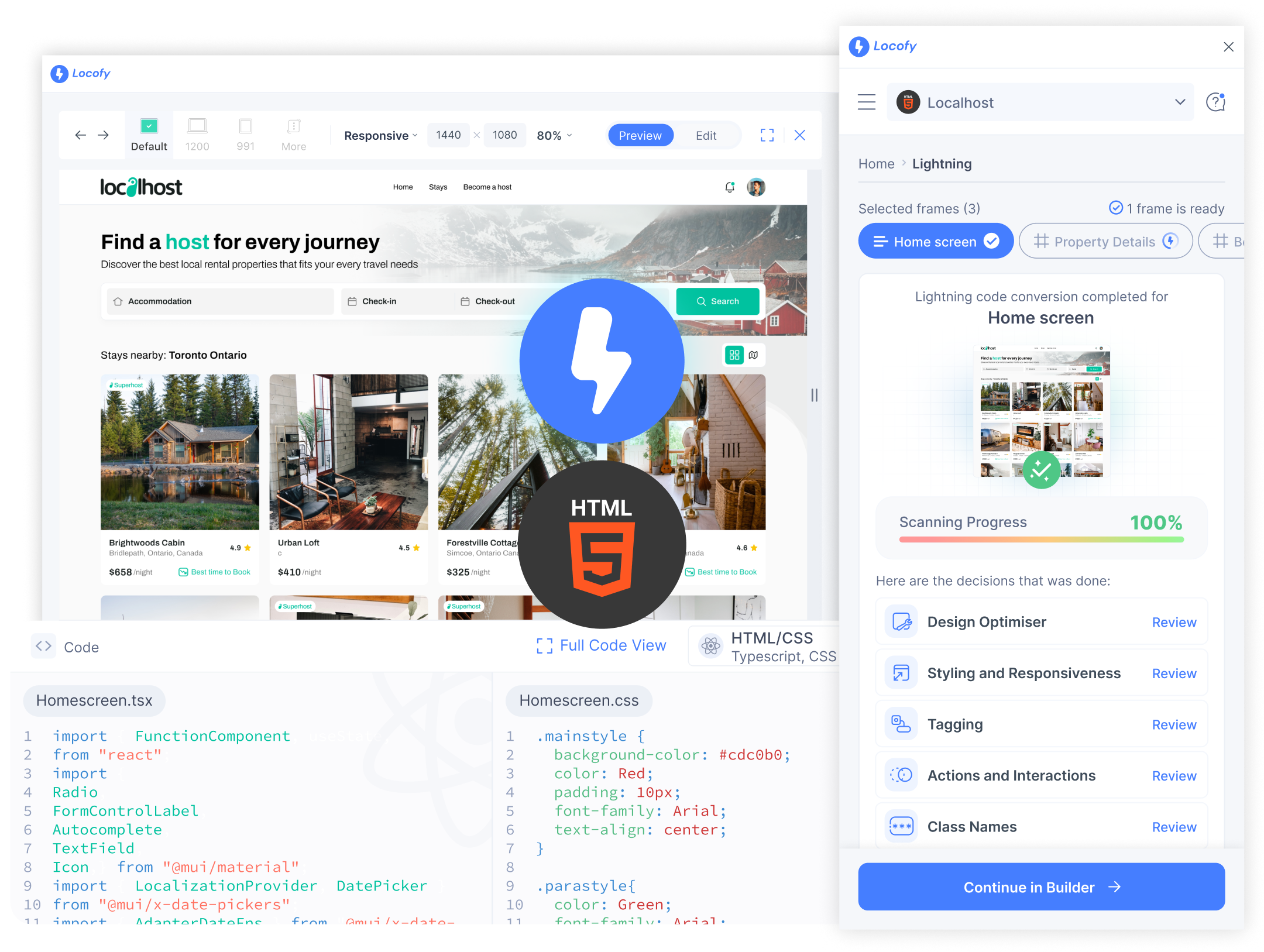 Locofy lets you switch from design to live, working code preview instantly within Figma's Dev Mode, making it easy for you to check the code and how it adapts to different screens.