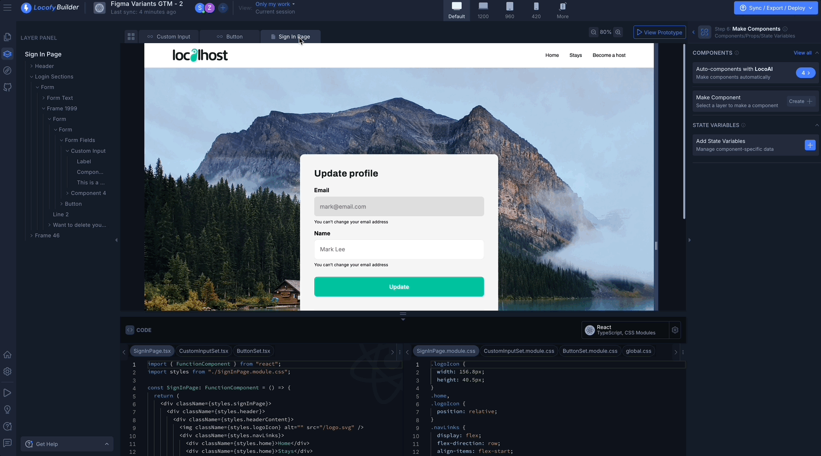 - Open the Locofy Builder and on the right panel, you’ll find “Make Components”; click on “Create.”